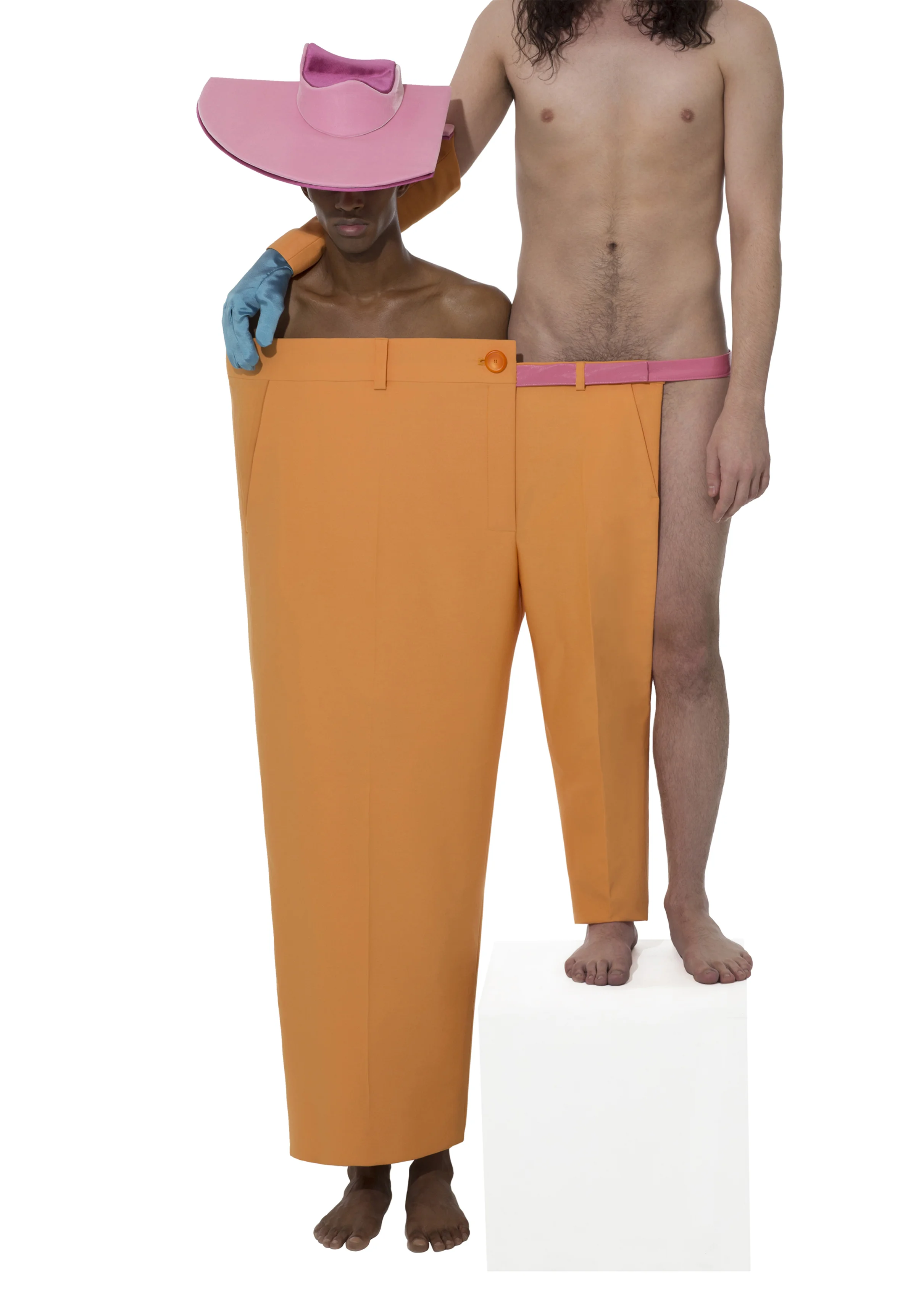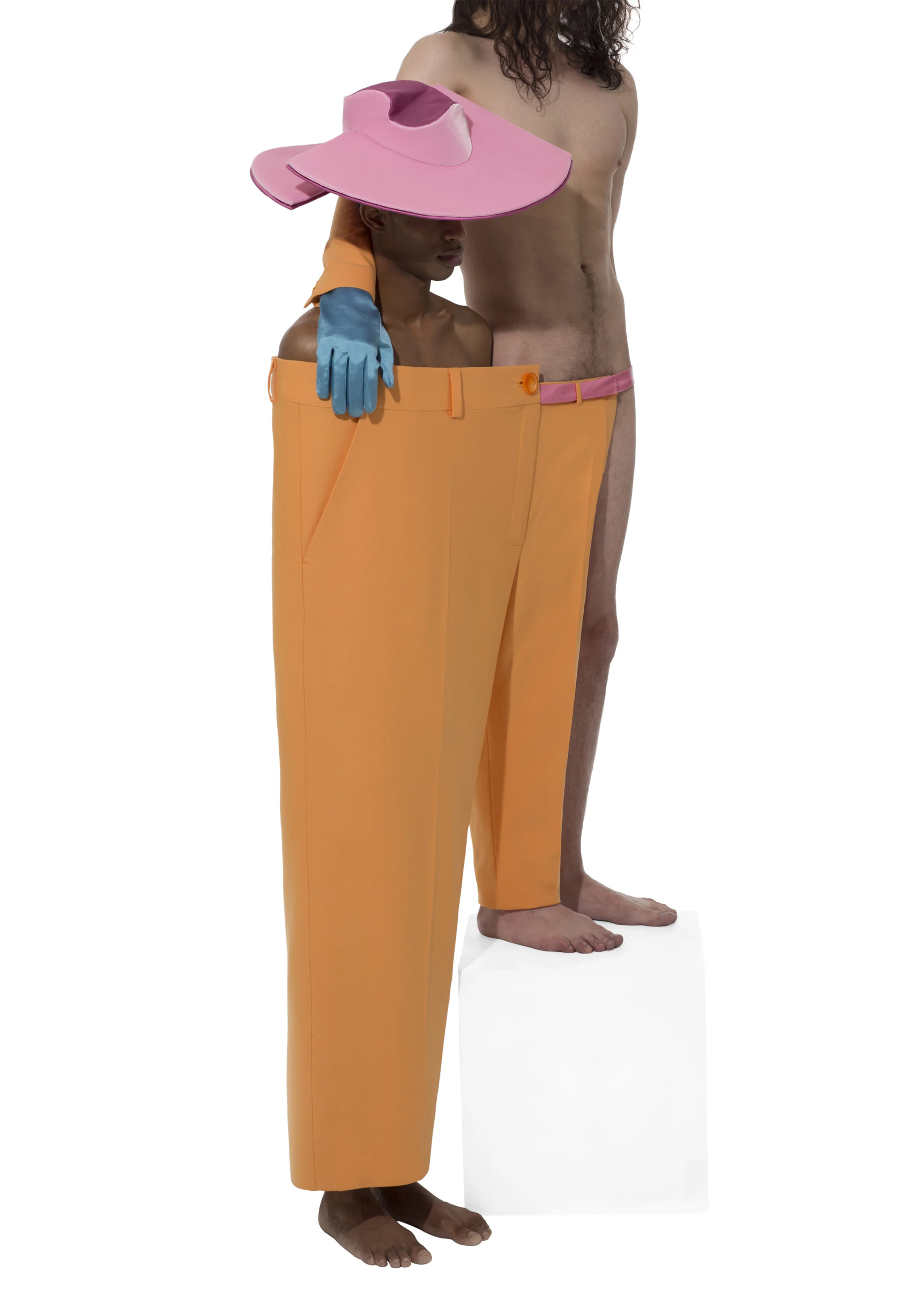 In “SUBSTANTIAL BOND” I began the conversation with a classic suit. That way, every change I made to the familiar shape showed the audience an unseen connection.